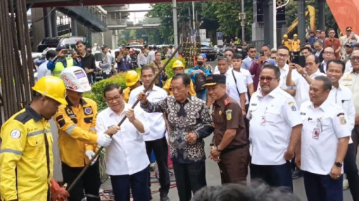 Gubernur Pramono Tinjau Langsung Pembongkaran Tiang Monorel